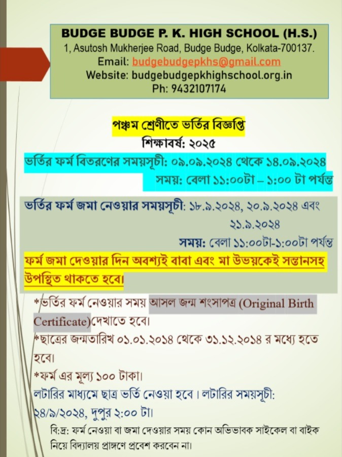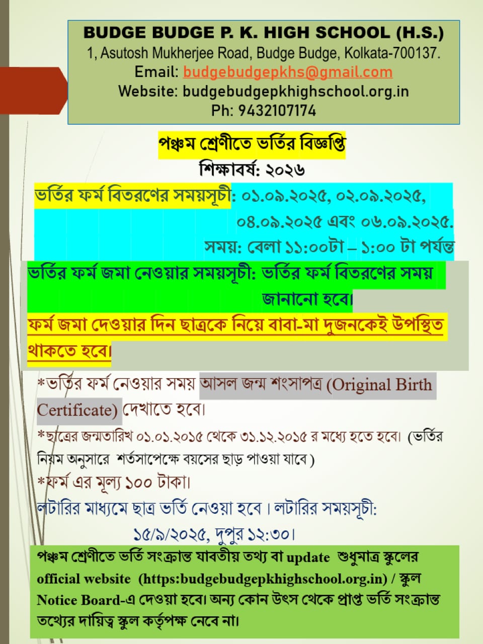 Budge Budge P.K. High School. The name itself is a talisman, not only in the town, but in the whole state as well. We cordially welcome you to our holy shrine.