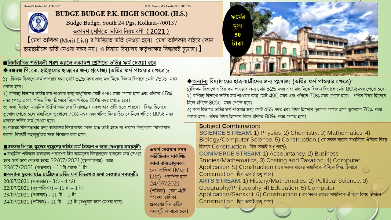 Class XI এ ভর্তির MERIT LIST / WAITING LIST এ যেসকল ছাত্রছাত্রীদের নাম আছে, তাদের সবাইকে ভর্তি নেওয়া হবে। ভর্তির সময়সূচি পরে জানানো হবে। তোমরা বিদ্যালয়ের ওয়েবসাইট নিয়মিত check করবে।